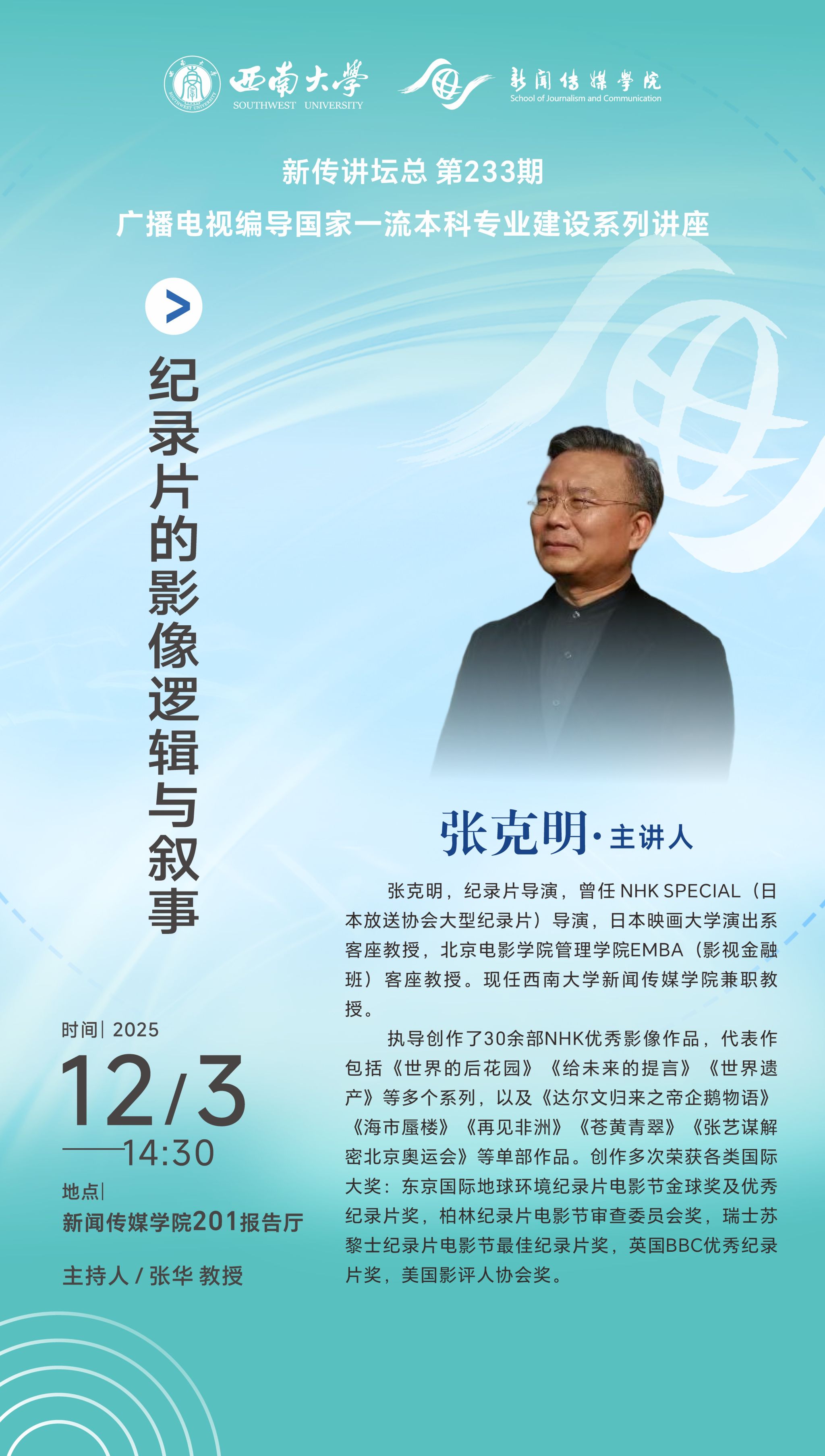新传讲坛总第233期| 张克明:纪录片的影像逻辑与叙事