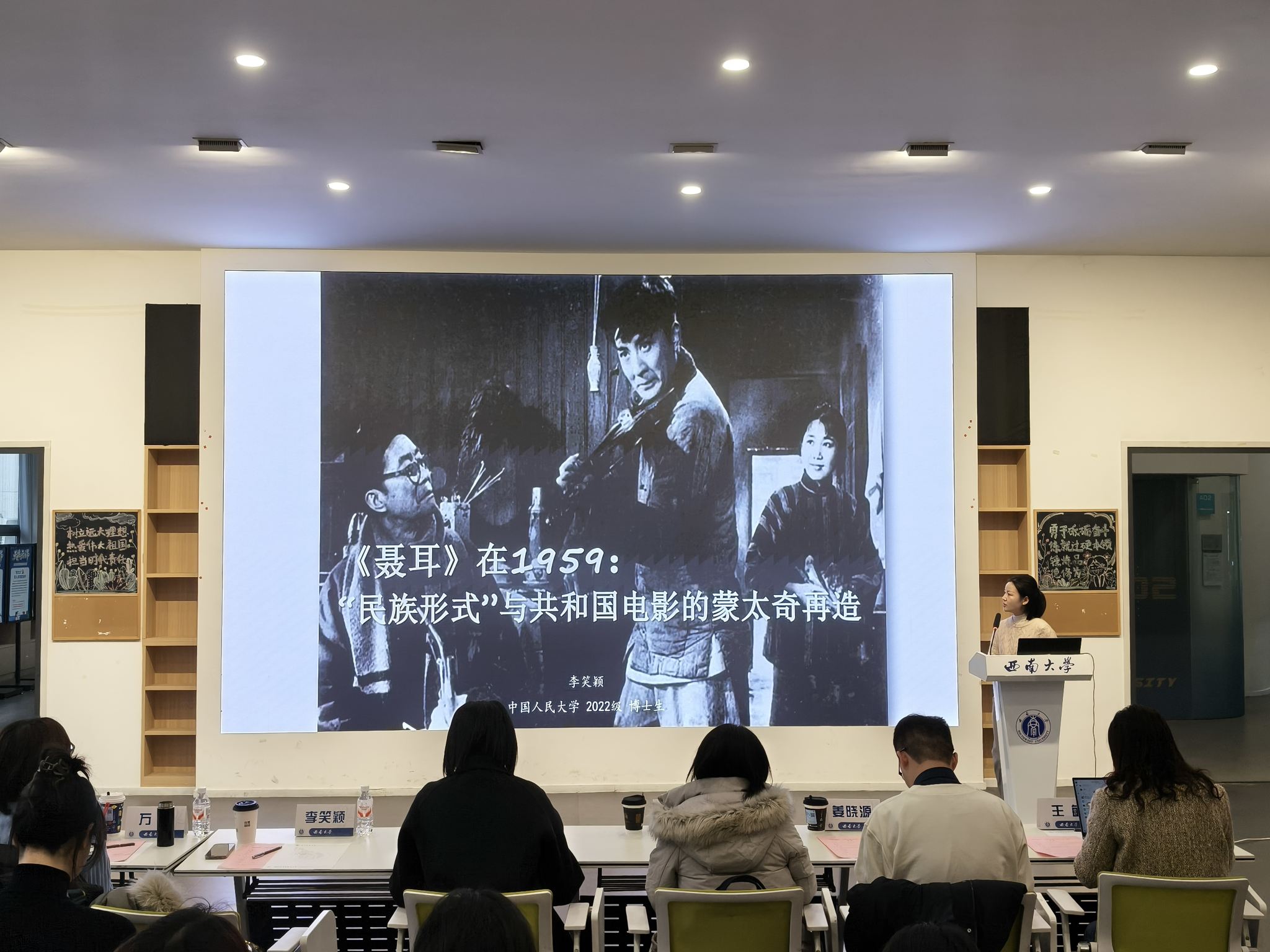 随后,中国人民大学美学博士候选人李笑颖分享了题为《<聂耳>在1959:“民族形式”与共和国电影的蒙太奇再造》的研究。她以1959年献礼片《聂耳》为研究对象,深入分析了导演郑君里提出的“音乐蒙太奇”概念如何将聂耳的歌曲创作与影像叙事相结合,从而在电影实践中回应了新中国初期关于“民族形式”的文化政治诉求,实现了苏联蒙太奇理论在中国语境下的美学裂变。